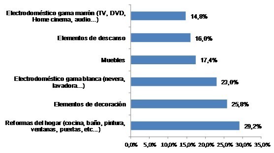 Un 36% de los españoles tiene pensado invertir este año en su hogar, renovando sus equipamientos domésticos o acometiendo obras de reformas. De este porcentaje, un 29,2% manifiesta su intención de realizar obras de reformas en cocina, baño, puertas, ventanas, etc. Por otro lado, casi un 26% de los ciudadanos también planea gastar en elementos decorativos para la casa, así como un 23% confiesa querer renovar sus equipos electrodomésticos y un 17,4% cambiar los muebles. El gasto medio previsto por los españoles para acometer estas inversiones y reformas asciende a 1.294 euros. Aunque la mayoría de los encuestados (54%) tiene intención de realizar un pequeño desembolso que asciende a 150€ aproximadamente, el 28% declara una intención de gasto de unos 750€. En este sentido, cuando las inversiones se refieren a obras de reforma, este importe de gasto medio asciende a 8.863€.