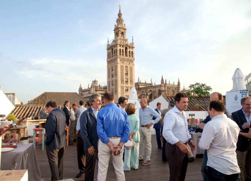 La Duquesa sentía devoción por Sevilla, y no podía ser de otro modo que Cayetano Martínez de Irujo eligiera esta ciudad para celebrar la primera degustación gastronómica dirigida al sector profesional. Un total de 60 profesionales pudieron disfrutar y degustar la calidad y exquisitez de los productos Casa de Alba en la espectacular terraza del Hotel Los Seises by Fonteruz (Sevilla), del grupo Fontecruz Hoteles (