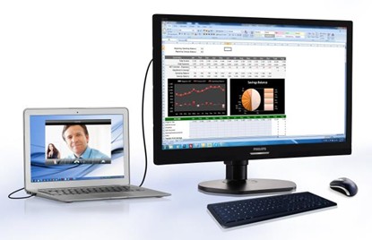 A diferencia de las réplicas de puertos convencionales o puertos acoplados que suponen hardware y cables extra en el escritorio, el monitor con puerto USB de Philips ya cuenta con amplias opciones de conectividad, pensadas para que los usuarios puedan acceder a ellas con sólo conectar su portátil a través de un cable USB estándar. Esta sencillez es la que le otorga sentido. Un teclado de gran tamaño y un ratón, un disco duro externo, una cámara - los usuarios solo tienen que conectar los dispositivos que quieran al monitor para beneficiarse de una productividad eficaz al instante. Con su entrada integrada de Ethernet, la pantalla también ofrece un plug-in de acceso a Internet o a la intranet de la compañía, lo que elimina este cable específico, que de otro modo sería necesario.