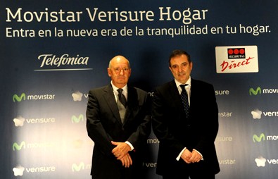Luis Miguel Gilpérez, presidente de Telefónica España, y Luis Gil, presidente de Desarrollo de Negocio y Expansión del Grupo SECURITAS DIRECT, han presentado hoy Movistar Verisure Hogar, el primer servicio de quíntuple play del mercado a nivel mundial que aprovecha los avances e innovaciones tecnológicas de la Banda Ancha Fija (Fibra Óptica) y Móvil (4,5 G). De esta manera, el nuevo servicio será pionero y único en el mundo por sus características.