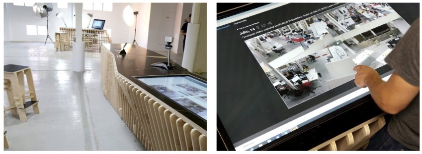El espacio visual más importante se ha denominado Foro Creativo, un entorno colaborativo tecnológico multifuncional que cuenta en su núcleo central con una mesa de trabajo que incorpora una gran pantalla multitáctil bajo Windows 10 en la que varios asistentes simultáneamente pueden contribuir con sus aportaciones individuales, con diversas aplicaciones que permiten guardar y compartir la información con cualquier dispositivo conectado a la nube a través de OneDrive. Este entorno de colaboración se complementa además con una gran pantalla de proyección, en la que los usuarios pueden gestionar los contenidos digitales directamente con gestos y movimientos gracias a la tecnología Kinect de Microsoft.