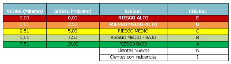 Un ejemplo de rating de un Credit Scoring puede ser entre 0 y 10. En función de la puntuación obtenida, establecemos la segmentación de los clientes, que será de gran ayuda tanto para el Departamento Comercial como el Departamento Financiero.