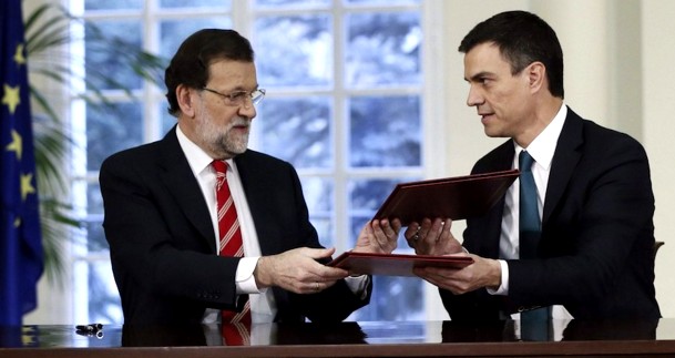 Pero lo que llamaba la atención era la transformación de lo propuesto en el Programa Electoral. Parecía como si los redactores de los 53 folios hubieran renegado de los postulados electorales para sustituirlos por otros. No propenso a ver trueques y engaños donde puede que no existan, cotejé el Programa electoral con el nuevo y aparecieron unas diferencias que saltaron como liebres: La estructura territorial del Estado al que se aspiraba, La Reforma de la Constitución que se presentaba como imprescindible, el Referéndum catalán, o la forma de acomodar la Estabilidad Presupuestaria perdían consistencia para ceder protagonismo a otras propuestas: Derogación de la Reforma Laboral, Nuevo Estatuto de los Trabajadores, Reforma de Congreso y Senado, Trasparencia en el gasto público,…