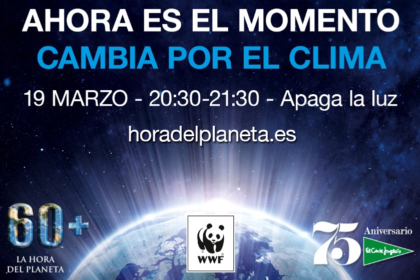 El Grupo El Corte Inglés se suma por octavo año consecutivo a “La Hora del Planeta” apagando las fachadas de sus principales centros de toda España este sábado, 19 de marzo, a las 20:30 horas. Bajo el lema “Cambia por el Clima”, la compañía realizará este gesto para concienciar sobre la importancia de la lucha contra el cambio climático. El compromiso con esta iniciativa, promovida por la organización no gubernamental WWF, se reflejará asimismo en todos los canales de comunicación de El Corte Inglés. Así, la empresa involucrará a sus empleados en esta acción a través de la intranet corporativa y utilizará la web corporativa y las distintas redes sociales en las que está presente para transmitir la necesidad de un compromiso real con el medio ambiente. La compañía involucrará a todos los empleados y clientes en esta acción a través de sus diferentes canales de comunicación.