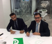 | Emiliano Bérmudez, subdirector general de donpiso, con el franquiciado de Casteldefells Joaquín González |