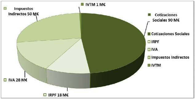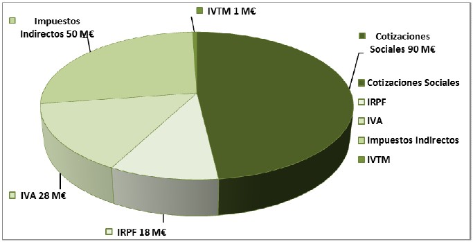 - Cotizaciones sociales: 90 millones de euros