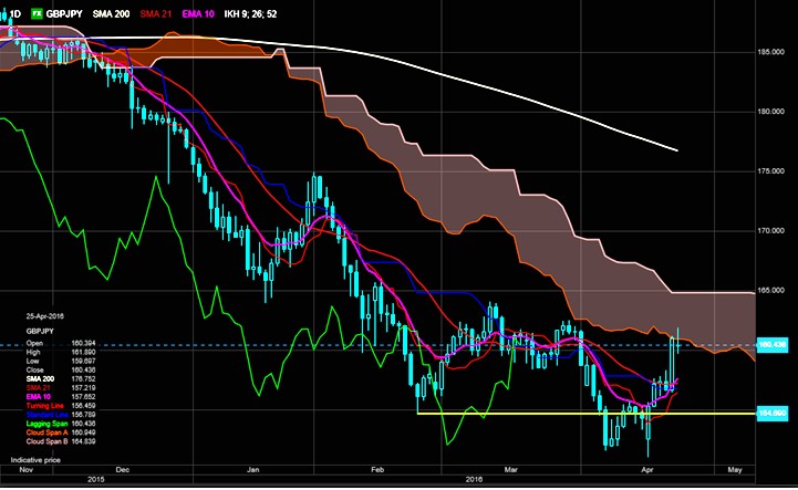 El par libra-yen (GBPJPY) repuntó con fuerza el viernes y la extensión del rally probablemente se activó ante una mayor cobertura de cortos en la libra esterlina más que debido a cualquier nuevo acontecimiento. No obstante, hay que tener en cuenta que se han disminuido las probabilidades de un Brexit, a pesar de la pequeña evidencia de nuevas tendencias en las encuestas, así como un enorme contingente de indecisos (sin olvidar la incertidumbre de cómo se motivará a los votantes por el Sí y por el No).