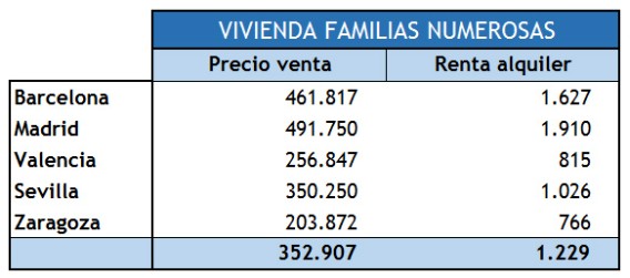 La vivienda media para familias numerosas cuesta 352.907 euros