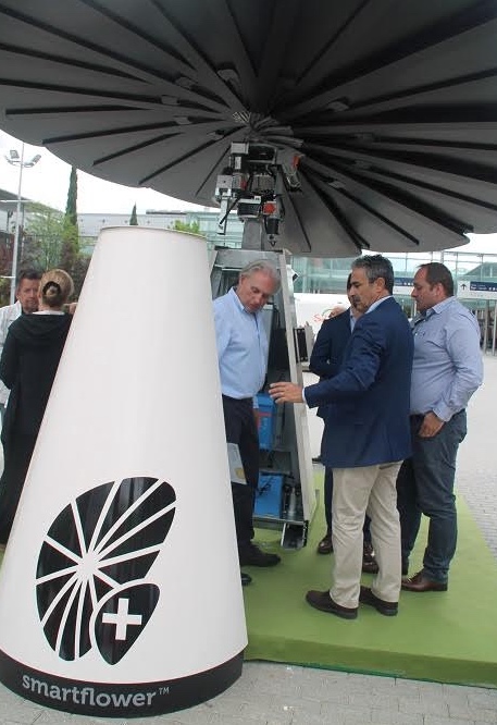 Smartflower POP, el primer sistema fotovoltaico 'todo en uno', es uno de los grandes protagonistas de la decimonovena edición de la Feria Internacional de Energía y Medio Ambiente, GENERA 2016, que se celebra en la feria de Madrid del 15 al 17 de junio. Apostado a las puertas del pabellón 5 de la feria de Madrid, sus grandes dimensiones (18 m2 de paneles en movimiento) y su elegante estética en forma de flor de girasol, le han valido el título de uno de los protagonistas de GENERA 2016. El dispositivo, de fácil instalación, puede producir su propia energía limpia mediante paneles en movimiento que generan hasta 5.500 kWh al año. “Ha llegado a España recientemente y viene para quedarse en los jardines de los hogares o en las instalaciones de empresas que deseen proyectar una imagen de respeto al medio ambiente y administraciones públicas", ha explicado el director de la compañía, Julio Matilla.