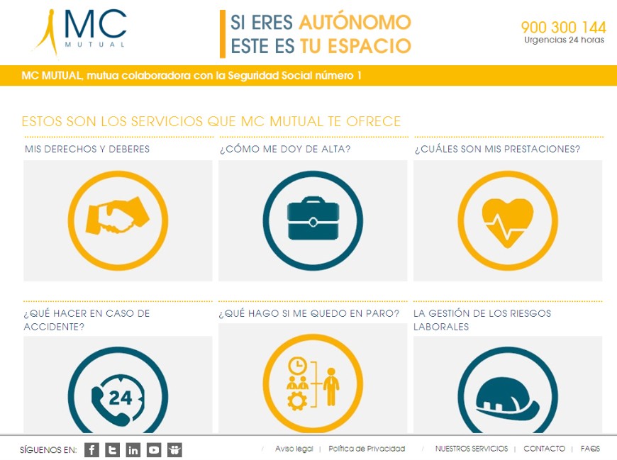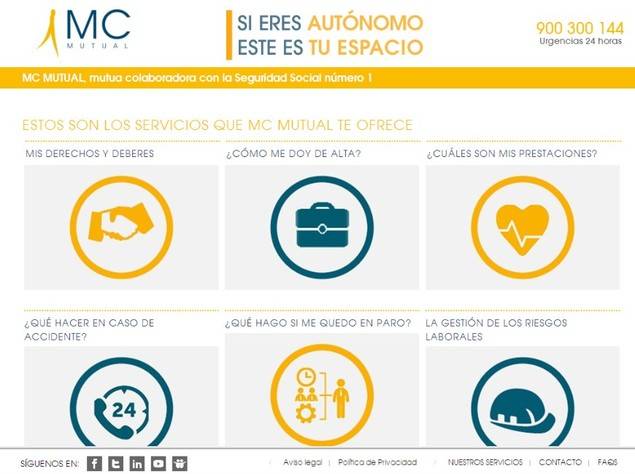 En el nuevo Portal del autónomo de MC MUTUAL, los trabajadores por cuenta propia pueden encontrar información sobre cómo darse de alta en la Seguridad Social y optar por las diferentes coberturas; cómo solicitar la prestación por cese de actividad, el llamado paro del autónomo; o la ubicación de los centros asistenciales de MC MUTUAL. También dispone de un calculador, que permite conocer a cada trabajador