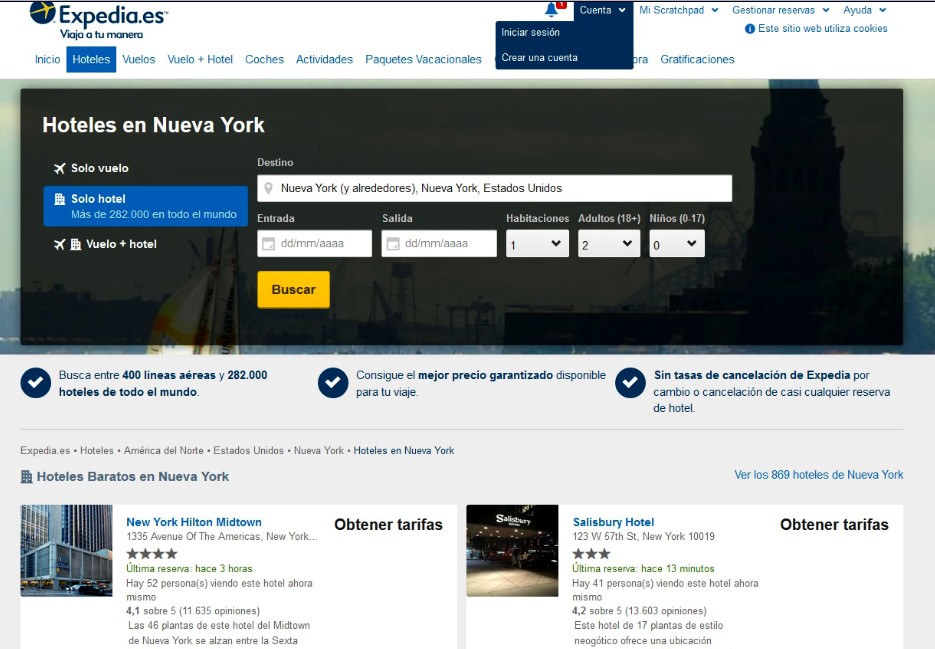 Expedia. Como siempre, visite la página, simplemente indique sus preferencias, presupuestos y posibilidades, y deje que los profesionales se encarguen de buscar su alojamiento y organizar su viaje.
