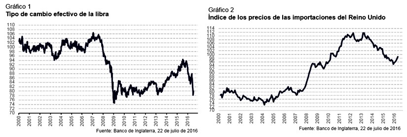 Si cabía temer un contagio a través de los vectores de la confianza y los mercados financieros, este parece muy reducido por el momento. Efectivamente, el Reino Unido se ha visto afectado por diversas vías. La más destacada ha sido la caída de la divisa británica, que ha empezado a empujar al alza los precios de las importaciones, lo cual debería desembocar en un aumento de la inflación y lastrar el consumo.