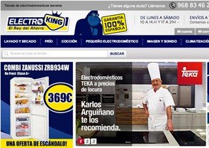 En electroKing.es se ofrecen todo tipo de electrodomésticos de primeras marcas a precios reducidos o con oferta: desde lavadoras, frigoríficos y hornos hasta televisores, reproductores, o cualquier pequeño electrodoméstico. La web cuenta con diferentes servicios como la posibilidad de instalación de electrodomésticos y la retirada del viejo o la contratación de garantías adicionales para sus compras. Además, los habitantes de Murcia tienen la posibilidad de recoger los pedidos en la tienda física y evitar los gastos de envío.