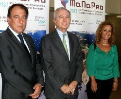 | De izda a drcha: Luis Mora, Director General de PharmaMar; José María Fernández Sousa-Faro, Presidente de PharmaMar y del Grupo Zeltia y Carmen Cuevas, Directora de I+D de PharmaMar y Presidenta del Congreso MaNaPro.