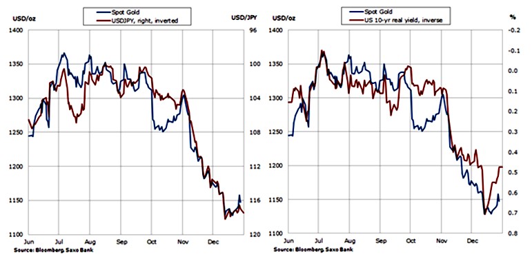 Las perspectivas de varias subidas de tipos de interés por parte de la Reserva Federal de Estados Unidos, unido con el aumento de los rendimientos de los bonos, el fortalecimiento del dólar y la subida de los precios de las acciones en todos los países, ayudó a cambiar las perspectivas para el oro, y llevó a un éxodo importante de las inversiones "papel". La trayectoria del dólar, especialmente frente al euro y el yen, sigue oscurecida, pero con un dólar potencialmente más alto a la vista, vemos vientos en contra más limitados.