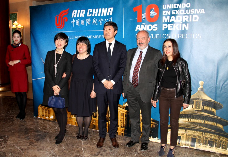 La Compañía de Aviación Internacional de China, Air China celebró esta noche el décimo aniversario de su vuelo directo Madrid-Beijing en el Teatro Real de Madrid anunciando el nuevo modelo de avión Boeing 787 en toda la flota y la nueva ruta directa de Barcelona a Shanghai a partir del 5 de mayo de este año. Así , Air China cuenta ya con seis rutas aéreas con España, cinco de los cuales son para pasajeros y uno de carga llegando así a un total de 15 vuelos semanales. El embajador de China en España, Lyu Fan, el director general de la Gestión de la Navegación Aérea del Ministerio de Fomento, Angel Luis Arias, el director de turismo de la Comunidad de Madrid, Carlos Chaguaceda, el director de Asia y el Pacífico de la Organización Mundial de Turismo, Xu Jing, así como representantes de gobierno, instituciones, empresas y personalidades de distintos sectores de la sociedad estuvieron presentes en la gala, así como José Luis Barceló, Editor-Director de "El Mundo Financiero".
