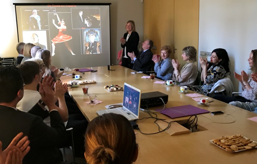 En presencia de varias decenas de artistas rusos, entre los que se encontraban músicos, bailarines de ballet, artistas de circo y otras disciplinas, así como periodistas, Solovieva expuso las razones que deben ilusionar a todos los que se dedican al arte y la cultura en España a trabajar de forma conjunta, lo que dará una mayor proyección a la cultura rusa.