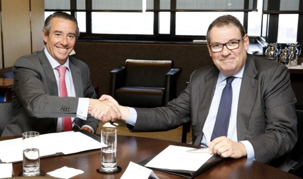 El director general de CaixaBank, Juan Alcaraz, y el presidente de CEHAT, Juan Molas.