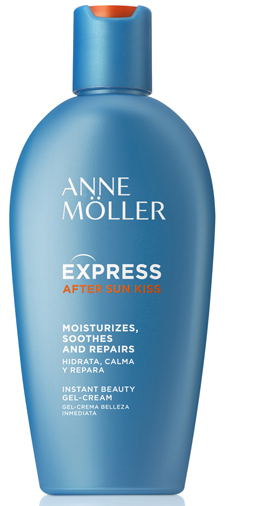 Express After Sun Kiss . Una crema corporal para después del sol. Hidrata, calma y repara la piel, al tiempo que contribuye a prolongar el bronceado. Con partículas iluminadoras de color rosado que reflejan la luz y realzan el moreno. Enriquecido con aceite de babasú y Vitamina E. Fomato 200 ml. PVP rec. 15,59€