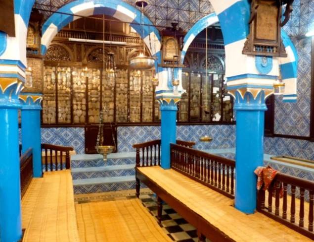 Construida en torno al año 586 antes de Cristo, la sinagoga de la Ghriba destaca por sus techos verdes, sus paredes azules y sus coloridos azulejos, haciendo de este lugar sagrado para los judíos un espectáculo digno de visitar durante esta festividad, ya que combina folclore, culto y dogma.