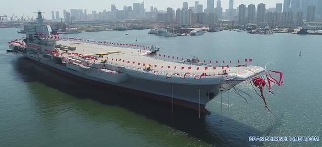 DALIAN (Xinhua/Li Gang) -- China ha botado su segundo portaaviones en el astillero de Dalian, en la provincia nororiental de Liaoning. El nuevo navío, el primero de fabricación nacional, fue trasladado desde el muelle seco hasta el agua en una ceremonia que comenzó a las 9:00 horas en el astillero de la empresa China Shipbuilding Industry Corp.Se trata del segundo portaaviones del país asiático. El primero, bautizado como Liaoning, fue reacondicionado a partir de uno fabricado por la Unión Soviética y entró en servicio para la Armada del Ejército Popular de Liberación en 2012. China comenzó la construcción de su segundo portaaviones en noviembre de 2013, mientras que la construcción del muelle inició en marzo de 2015.
