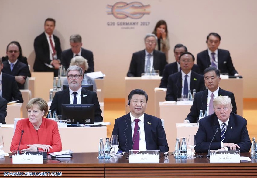 HAMBURGO, Alemania (Xinhua) -- El presidente de China, Xi Jinping, pidió hoy a los miembros del G20 defender una economía mundial abierta y un régimen comercial multilateral en un momento en el que crecimiento global sigue siendo inestable pese a las señales de recuperación. En un discurso pronunciado en la cumbre anual del G20 en Hamburgo, una importante ciudad portuaria en el norte de Alemania, Xi también exhortó a realizar esfuerzos conjuntos para impulsar nuevos motores de crecimiento, promover un crecimiento más inclusivo y mejorar la gobernación económica global. "Debemos seguir comprometidos con la apertura y el beneficio mutuo para todos con el fin de incrementar el tamaño del 'pastel' económico global", declaró Xi, al frente de la segunda economía más grande del mundo.