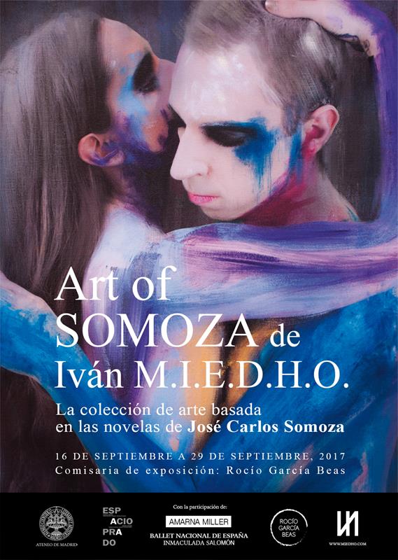Art Of Somoza, la nueva exposición que abrirá sus puertas el próximo 16 de septiembre en el Ateneo de Madrid, es considerada una colección inédita en el panorama artístico al fundir arte y literatura en un nuevo y único concepto artístico. Iván MIEDHO, uno de los máximos exponentes actuales de la escena underground de la actualidad, propone en sus trabajos una lectura plástica de las páginas y los personajes de José Carlos Somoza. Este escritor cubano, cuya vida ha transcurrido en España, es reconocido en el mundo literario gracias a algunos galardones como el Premio de Teatro Radiofónico Margarita Xirgu, el Café Gijón o el Fernando Lara. Somoza busca en su obra dar una vuelta más al realismo literario, algo que inspiró a MIEDHO en su creación artística.