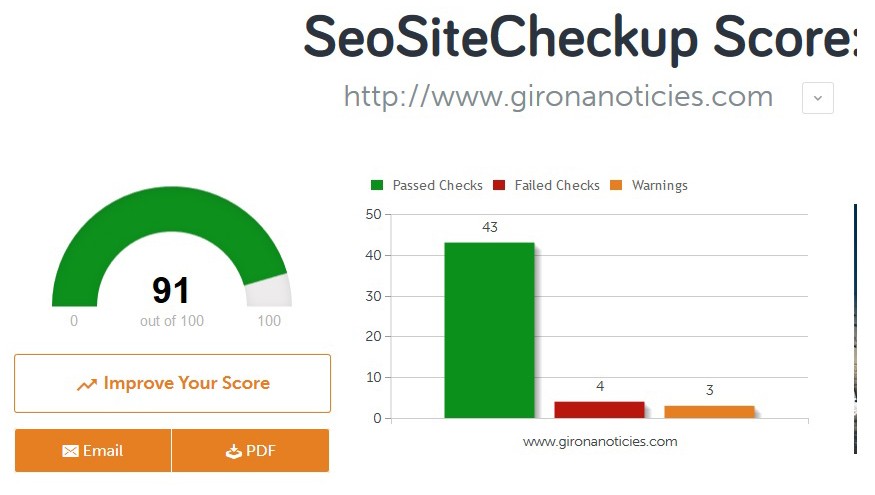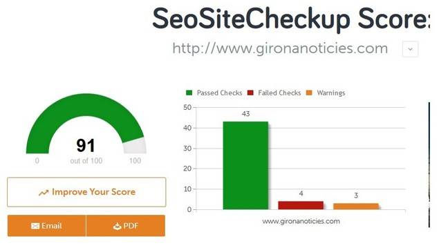 Con el tiempo, y según detalla la empresa SEO Site CheckUp con sede en Estados Unidos, GironaNotícies.com ha convertido en una de las plataformas de noticias mejor optimizadas de la Red tal como demuestra su puntuación, que oscila entre los 88 y los 94 puntos, superior a la que registran medios referenciales como Le Figaro, El Mundo o Washington Post.