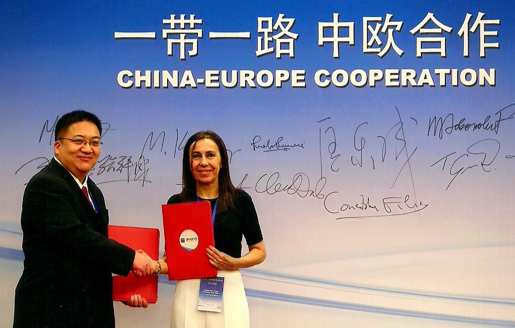 Numerosos empresarios y medios europeos se han adherido a esta nueva iniciativa de la Franja y la Ruta de la Seda impulsada por China. En el centro, Huang Lechen, vicepresidente de CEIS, junto a la adjunta a la dirección de El Mundo Financiero, Pilar Vicente.