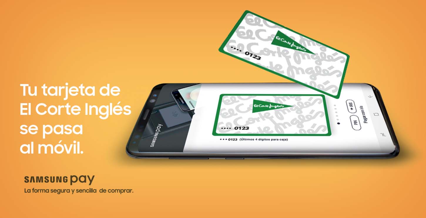 Con la incorporación de Samsung Pay, El Corte Inglés ofrece a todos los clientes un servicio de pago móvil seguro y sencillo para abonar todas sus compras con el smartphone, sin necesidad de llevar encima la tarjeta física. Los clientes titulares de una tarjeta de El Corte Inglés interesados en utilizar Samsung Pay solo tienen que dar de alta la tarjeta en los dispositivos Samsung Galaxy compatibles y comenzar a disfrutar de todas sus ventajas.