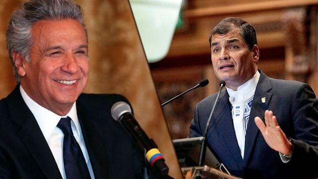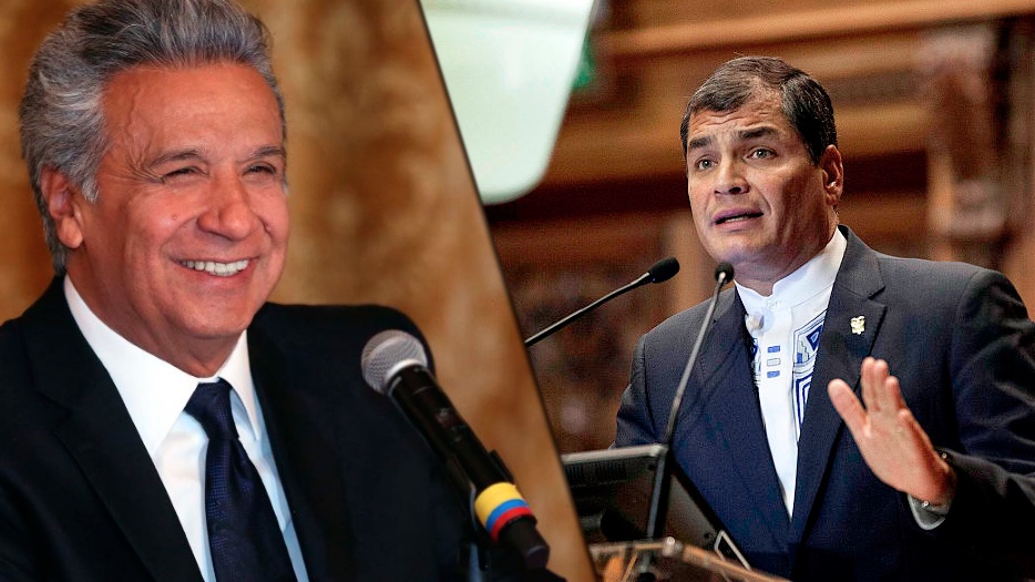 En el escenario, Lenin Moreno y Rafael Correa. En el 2017 Rafael Correa se aseguró de tener la oportunidad de volver a la presidencia con la aprobación, a través del Parlamento, de una medida que permitía la reelección indefinida a partir del 2021. Para las elecciones de ese año no iría como candidato de su partido Alianza País y escoge a Lenin Moreno, su colaborador y Vicepresidente desde el 2007 al 2013. En el primer round, Lenin Moreno denuncia que Rafael Correa había dejado una cámara oculta en el despacho presidencial que monitoreaba desde su móvil sin haberle informado.