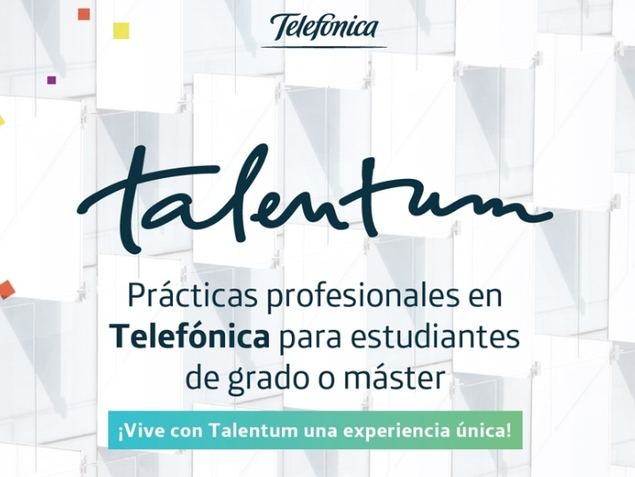 Talentum, plataforma de impulso al talento joven de Telefónica, ha abierto una nueva convocatoria de becas para estudiantes de grado, máster o recién titulados en Ingeniería (Telecomunicaciones, Informática, Sistemas e Industriales), Matemáticas, Física, Administración de Empresas, Economía y Finanzas, Marketing, Comunicación y Periodismo, Derecho y Recursos Humanos, en colaboración con FUE (Fundación Universidad Empresa). Las 45 plazas de prácticas de esta nueva convocatoria se llevarán a cabo en las oficinas de Telefónica de Madrid y Barcelona y tendrán una duración de seis meses. La fecha de incorporación tendrá lugar a partir de marzo. Las 45 plazas de prácticas de la nueva convocatoria se llevarán a cabo en las oficinas de Telefónica de Madrid y Barcelona, y tendrán una duración de seis meses. La fecha de incorporación tendrá lugar a partir de marzo.