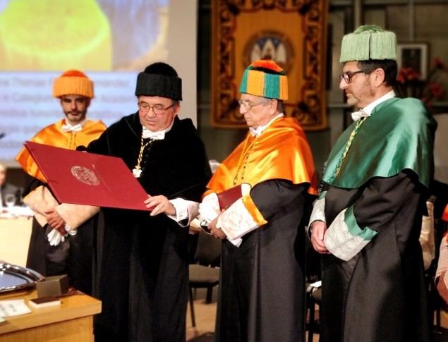 Tomás Fuertes, presidente de Grupo Fuertes, ha sido investido esta mañana doctor honoris causa por la Universidad de Murcia, en una ceremonia presidida por el rector José Orihuela, en el salón de actos de la Facultad de Economía y Empresa. El nombramiento de Tomás Fuertes fue aprobado por el Claustro Universitario el pasado 14 de diciembre de 2017 y fundamentado en “su apuesta permanente por el sector agroalimentario de la Región de Murcia, su conexión con la universidad en materia de I+D+i, mecenazgo y empleabilidad”. Es la primera vez en la historia de la institución que se produce un nombramiento doctor honoris causa, a propuesta simultánea de dos facultades, la de Economía y Empresa y la de Veterinaria.