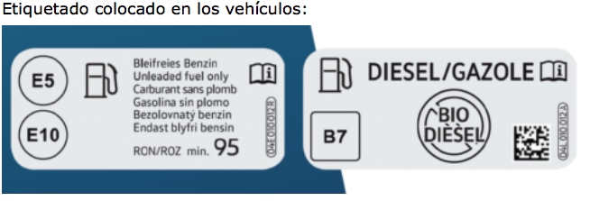 En el caso del Diesel, la “B “es biodiésel y la cifra el volumen máximo porcentual que se recomienda utilizar en el coche: 7 ó 10. También puede aparecer “XTL”, que es la abreviatura de un tipo de combustible diésel parafínico. En este caso, la etiqueta “B7” significa que el vehículo puede utilizar gasóleo que contenga hasta un 7% de biodiésel, y “B10” significa que el vehículo puede utilizar gasóleo que contenga hasta un 10% de biodiésel.