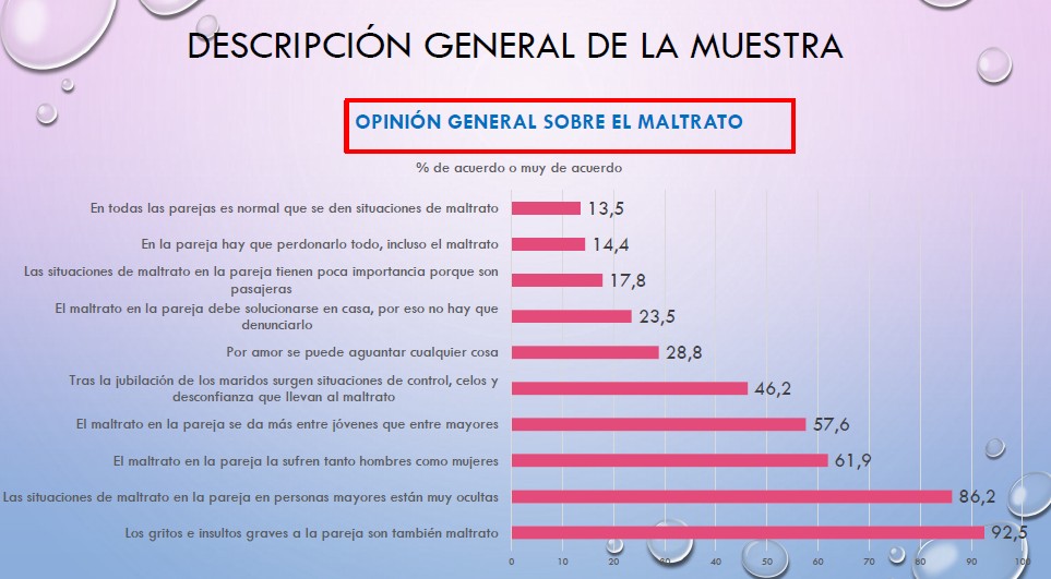 Los investigadores, que sondearon a más de mil personas, entrevistaron en profundidad a 20 mujeres que sufrían o habían sufrido violencia por parte de su pareja. Un tercio de ellas aún vivía con ella y seguían sufriendo actitudes violentas. Además, de estas entrevistas se obtuvieron resultados muy destacables: