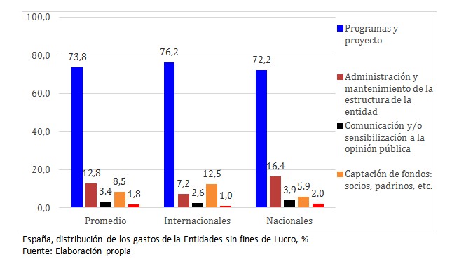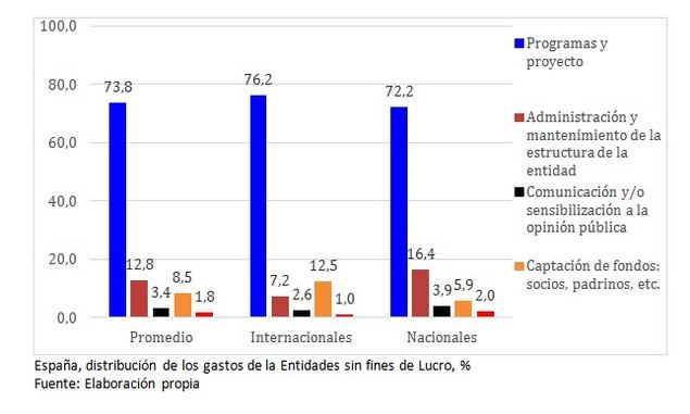 Así, el estudio, a través de una encuesta online realizada a las principales organizaciones miembro de AEFr, muestra que la principal partida es el gasto en programas y proyectos propios, al que se destina un 73,8% de los gastos totales. Los gastos restantes van destinados a administración, gestión, publicidad y capitación de fondos. En esta última área, las actividades de fundraising representan alrededor de un 8,5% del total de los recursos de las entidades no lucrativas.