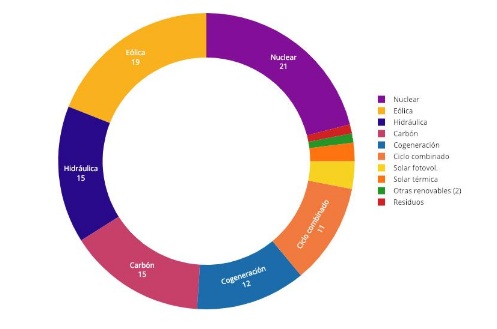 España cuenta con un mix eléctrico diversificado, pero no todas las tecnologías tienen el mismo peso específico. Más del 90% de la electricidad generada a lo largo de 2018 (hasta noviembre) se ha basado en solo seis: nuclear, eólica, hidráulica, carbón, cogeneración y ciclos combinados (gas). El resto, menos de un 10%, corresponde a solar fotovoltaica, solar térmica, otras renovables y residuos.