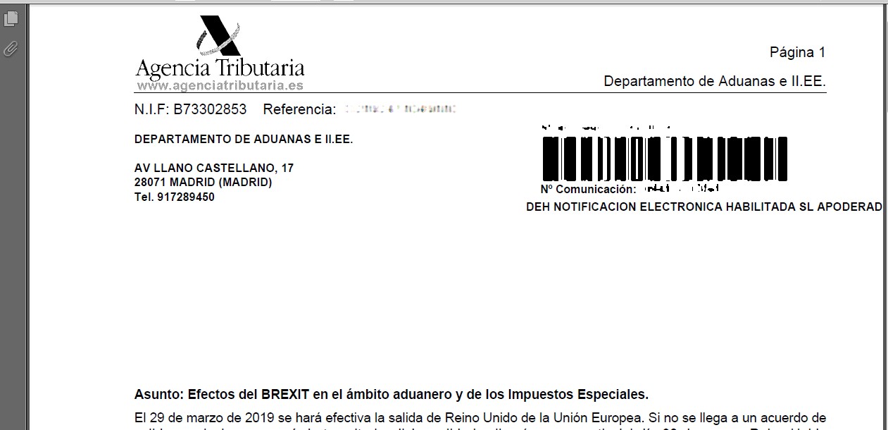 Asunto: Efectos del BREXIT en el ámbito aduanero y de los Impuestos Especiales.