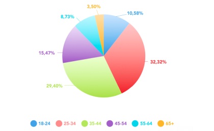 Respecto a la edad, la media de los usuarios se encuentra entre los 24 y 34 años, aunque sin mucha diferencia con el siguiente grupo, de entre 35 a 44 años. En todos los rangos de edad la presencia de la mujer sigue siendo muy superior a la de los hombres.