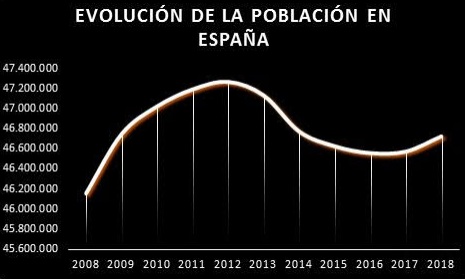 La población en España vuelve a superar los 46,7 millones de personas. A 1 de enero de 2018, el total de habitantes se situó en 46.722.980, incluyendo tanto el colectivo de nacionales como el de extranjero. Aunque sólo ha aumentado en un 0,32% el último año (unas 150.000 personas), el registro del año 2018 ha supuesto la confirmación de la inversión de la tendencia bajista en cuanto a número de habitantes en España, que de este modo, vuelve a niveles de 2009, tras enlazar años de descenso y estancamiento desde 2012. Así se concluye en un informe elaborado por AIS Group, empresa especialista en sistemas de marketing inteligente, tras la reciente publicación de datos pertenecientes al nuevo Padrón, que la compañía está ya incorporando a sus indicadores demográficos y económicos Habits Big Data.