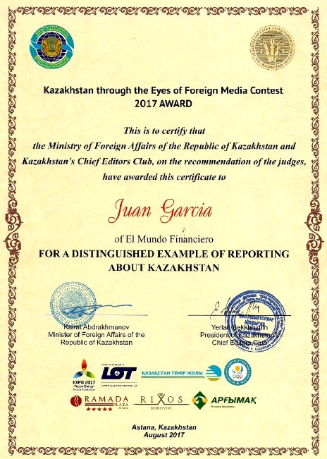 El Mundo Financiero, premio periodístico de Kazajstán