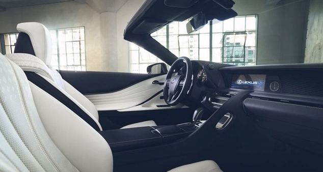 Además del atractivo visual de la carrocería exterior de la carrocería, el prototipo LC descapotable atrae a conductores y pasajeros por igual con las características de un habitáculo que satisface todas las necesidades. Desde el confort de sus asientos a medida al tacto de cada botón y costura, todos los aspectos de este LC han sido diseñados para que incluso el trayecto más trivial parezca una gran ocasión. Abundan los acabados en cuero blanco contrastado, mientras que unas costuras amarillas añaden un toque de color sin desviar la atención de la sutil elegancia global del diseño.