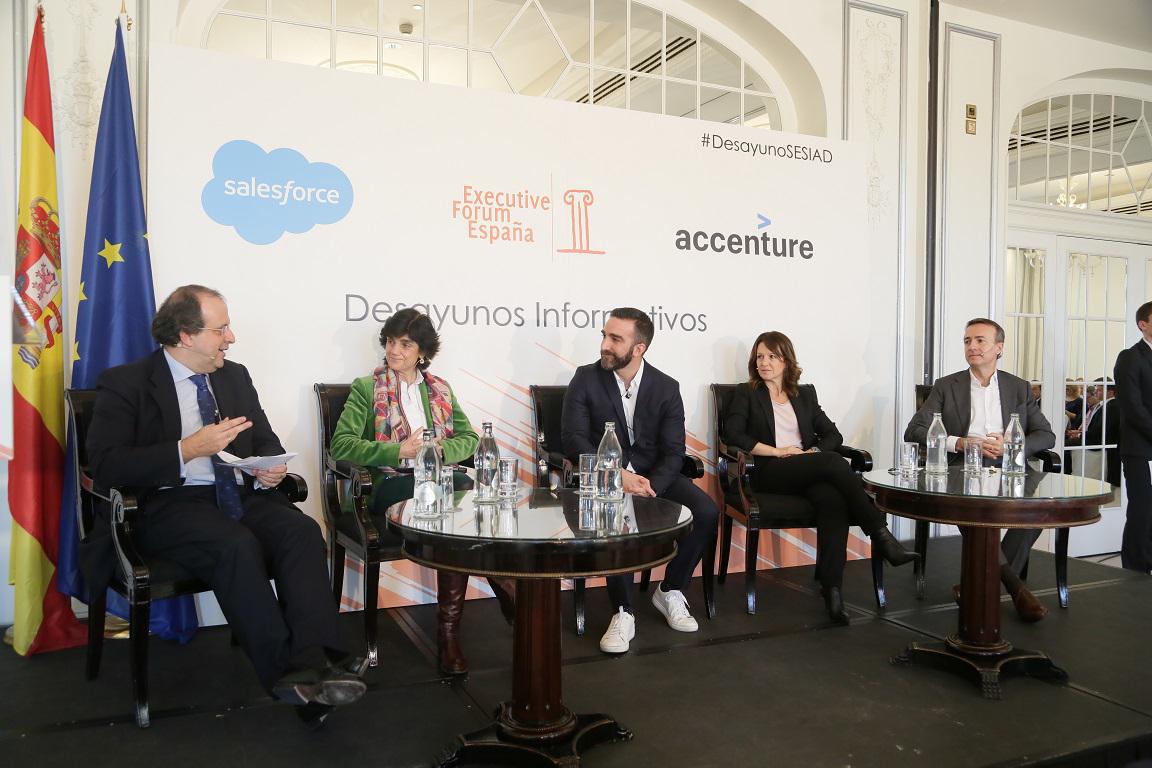 Mercedes Oblanca, Managing Director Accenture Technology España, Portugal e Israel, y Enrique Polo de Lara, Spain Country Leader & Area Vice President en Salesforce, han acompañado al secretario de Estado en su intervención. Oblanca, ha explicado el compromiso de Accenture con la transformación de las organizaciones, mediante el desarrollo y la oferta de soluciones tecnológicas e innovadoras aplicables a todos los sectores de actividad, logrando un impacto real en sus respectivas cuentas de resultados. Por su parte, Polo de Lara, ha manifestado la voluntad de Salesforce de estar en la agenda digital de las administraciones públicas, ayudándolas con sus servicios digitales a responder a la exigencia actual ciudadana de recibir un trato personalizado, más eficaz, rápido y seguro.