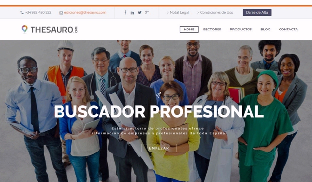 THESAURO EDICIONES, S.L. es una empresa española fundada en 1988, pionera en la edición de directorios profesionales de ámbito estatal, así como en su introducción en internet, convirtiéndose en 1997 en una de las primeras empresa de España en tener presencia en la red. Su portal www.buscadorprofesional.com es a día de hoy un referente en la búsqueda de profesionales en la red.