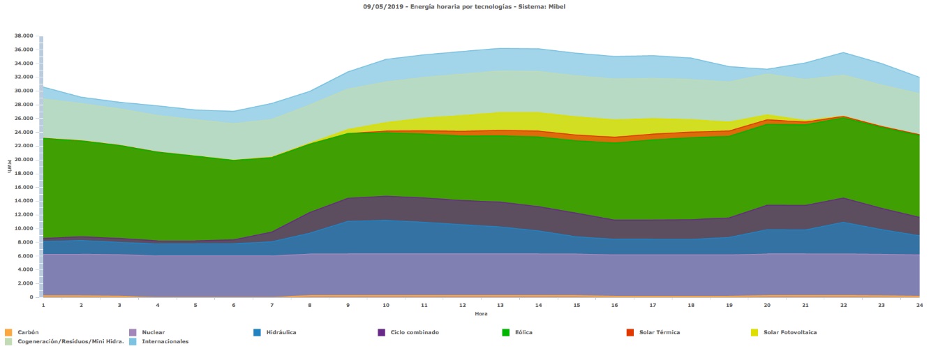 En marzo de 2019 continuaban en cabeza nuclear y eólica. Pero el carbón había retrocedido de la tercera a la séptima posición. Justo por detrás de la suma de energía solar fotovoltaica y térmica. El sorpasso, aclara Martínez, “se debe más a que el carbón ha producido un 75% menos, que al crecimiento, del 17,3%, de las tecnologías solares”.
