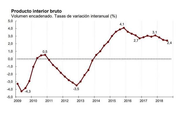 · Estadística reduce dos décimas el crecimiento de 2018 al 2,4% debido a que el consumo de los hogares fue más bajo de lo estimado