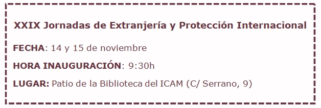 La sede del Colegio de Abogados de Madrid acoge a partir de mañana las XXIX Jornadas de Extranjería y Protección Internacional, organizadas conjuntamente por el ICAM y el Consejo General de la Abogacía Española. El evento arrancará a las 9:30h en el Patio de la Biblioteca del ICAM con las intervenciones del decano José María Alonso, la presidenta del Consejo General de la Abogacía Española, Victoria Ortega, y el presidente de la Subcomisión de Extranjería y Protección Internacional, Blas Jesús Imbroda.