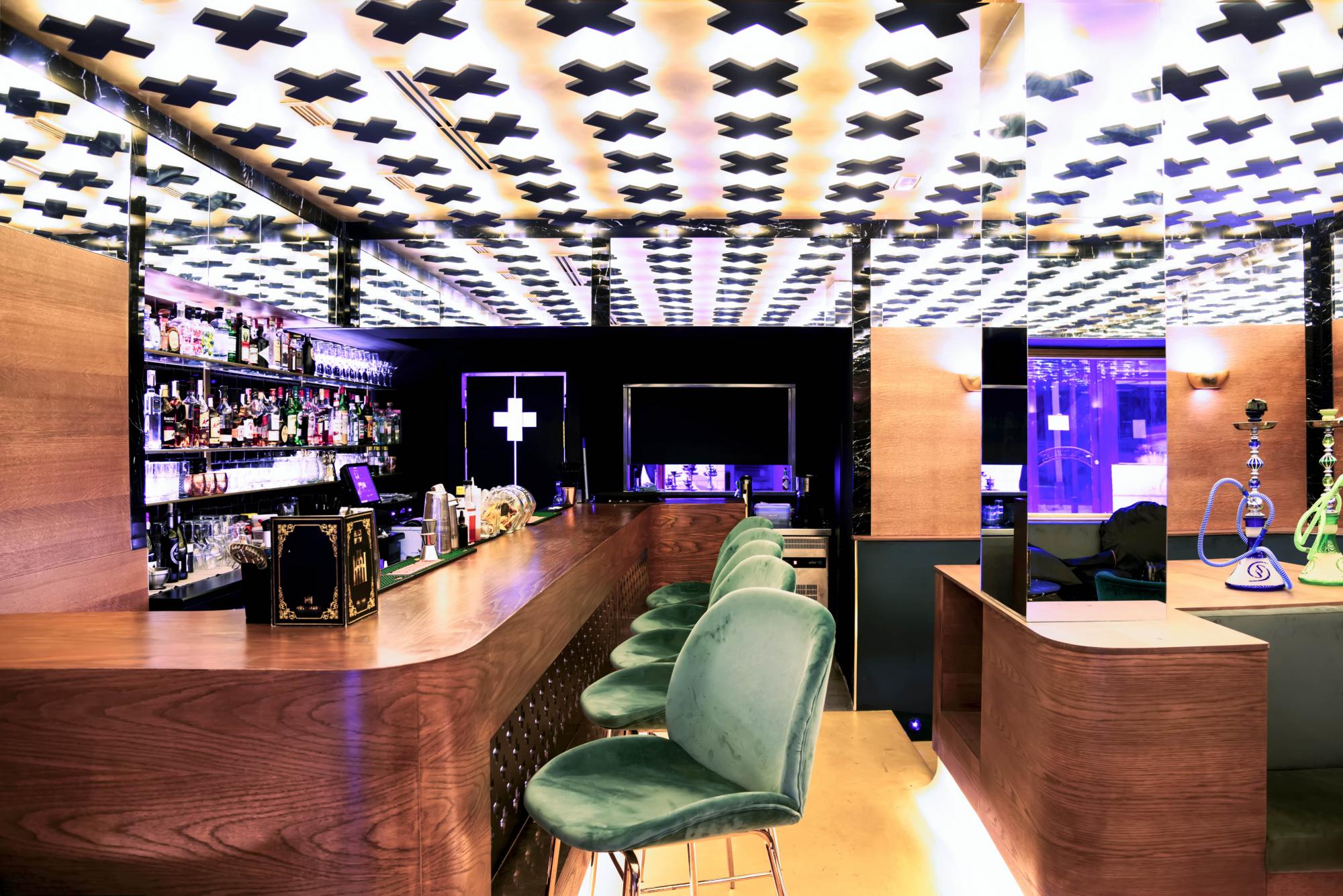 Para completar tu experiencia, el local cuenta con dos plantas donde predomina el mármol negro de sus mesas, la madera de la barra y el terciopelo en paredes y asientos en la primera planta, creándose en la planta baja una atmósfera más íntima, con asientos retro-iluminados y lámparas doradas.