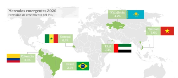En 2020, la flexibilización de la política monetaria tendrá un efecto estabilizador del crecimiento global, acompañado de un lento repunte del comercio, pero el escenario no está exento de incertidumbres, como la posibilidad vivir nuevas tensiones comerciales entre Estados Unidos y China o un no acuerdo entre Reino Unido y Unión Europea. ¿Qué mercados emergentes sobresalen en este contexto?