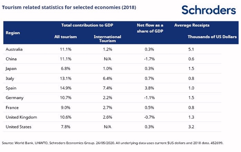Hay una serie de otros factores que entran en juego, como la estacionalidad del turismo en ciertas economías. Las economías europeas como España e Italia dependen especialmente de los visitantes de verano y, por lo tanto, el momento de esta crisis difícilmente podría haber sido peor. Además, no podemos obviar que es posible que las regiones más afectadas por el Covid-19 tengan dificultades para eliminar este estigma y tengan que esperar más tiempo hasta recuperar los niveles de turismo anteriores a la pandemia.